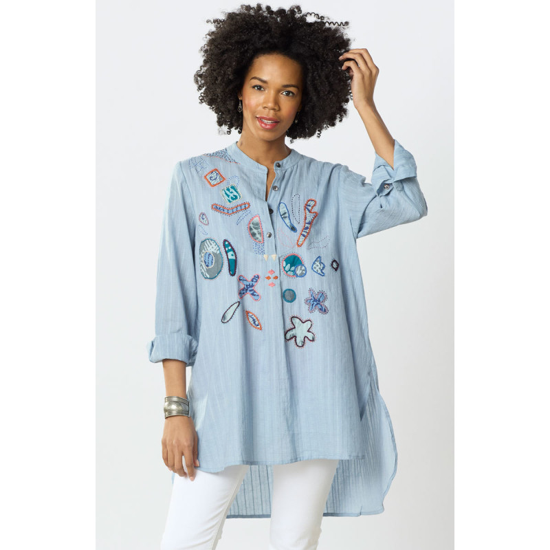 Amreli Upcycled Appliqué Lightweight Tunic - Cloud