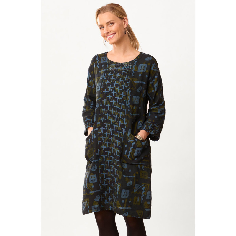 Patna Mixed Print Tunic Dress - Charcoal/Multi