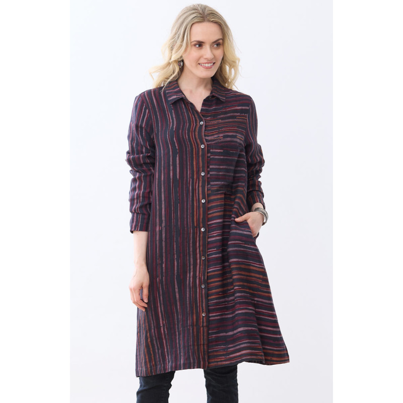 • Nahila A-Line Button-Down Long Shirt - Iced plum/Black